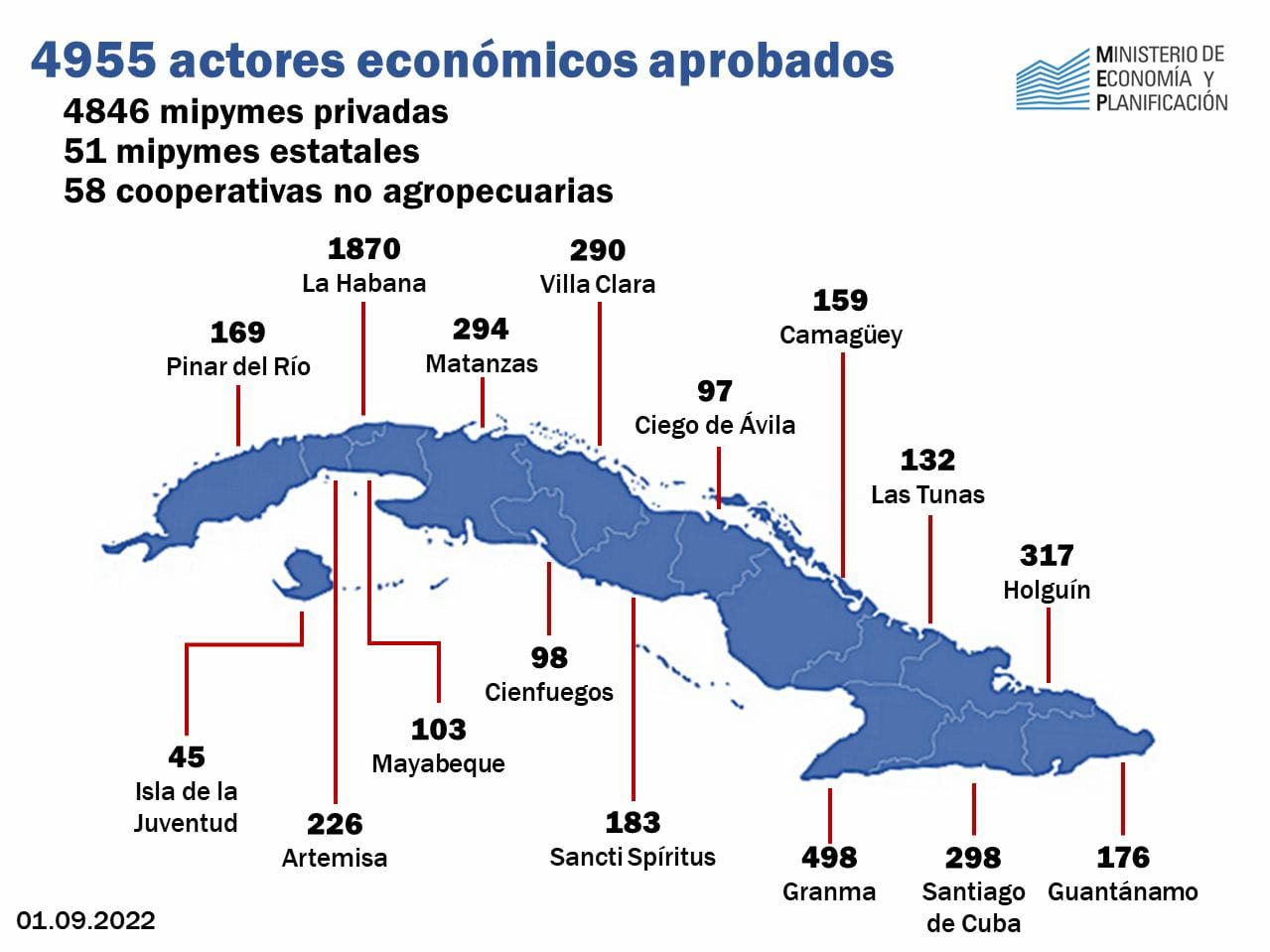 A cuatro mil 955 ascienden los nuevos actores económicos aprobados en Cuba al calor de la actualización del modelo económico, políticos y social de la Mayor de las Antillas.