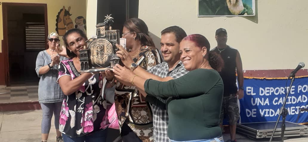 La directora del centro, licenciada María Cristina Menéndez Álvarez, recibió la distinción y expuso el trabajo realizado durante los últimos años en el mejoramiento social y material de la barriada, así como en el enfrentamiento a la COVID-19.Luis Camilo Mayet Cosme, funcionario de la Dirección Nacional de los CDR, resaltó los aportes del centro docente "a la unidad de la familia y el barrio en torno a la