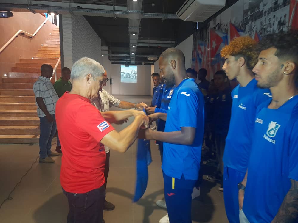 El estandarte fue recibido por Reinier Socarrás y Fidel Daniel Lezcano, quienes se desempeñan como capitanes de estos elencos. Ellos, de manos de Agustín González, subdirector provincial de Deportes, y Luis Mariano Veitía, comisionado del fútbol en la urbe citadina.