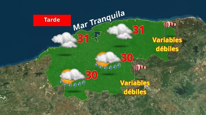 El Centro de Pronósticos de La Habana alertó que "en áreas de chubascos y tormentas eléctricas fuertes la velocidad de los vientos y la altura de las olas pueden ser superiores, incluso ocurrir eventos de tiempo severo como caída de granizos, tornados, etcétera".