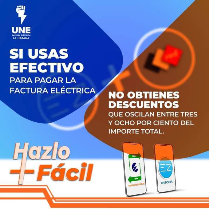 Lo que significa que, desde la fecha señalada, los métodos de pago del consumo eléctrico se realizarán a través de las plataformas digitales Enzona y Transfermóvil, así como en cajeros automáticos, telebanca y correos.