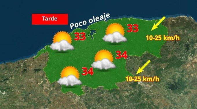 Respecto a las temperaturas, la entidad refirió que las mÃnimas tendrán valores próximos a los 26 grados Celsius (°C) en zonas costeras y 25 °C en el interior. Las máximas, entretanto, oscilarán entre los 32 °C en el litoral y 34 °C en el resto de la provincia.