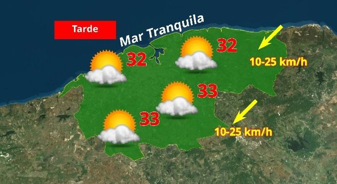 Respecto a las temperaturas, la entidad refirió que las mÃnimas tendrán valores próximos a los 25 grados Celsius (°C) en zonas costeras y 24 °C en el interior. Las máximas, entretanto, oscilarán entre los 32 °C en el litoral y 33 °C en el resto del territorio.