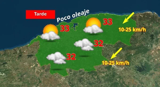 Respecto a las temperaturas, la entidad refirió que las mÃnimas tendrán valores próximos a los 26 grados Celsius (°C) en zonas costeras y 25 °C en el interior, mientras que las máximas oscilarán entre los 33 °C.