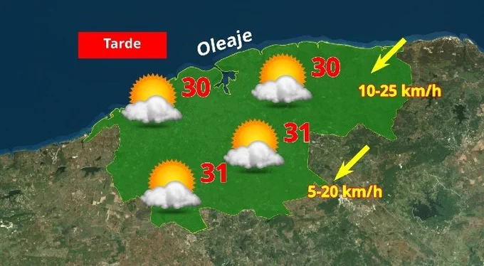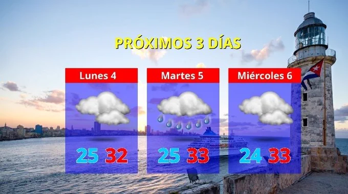 Durante las tardes, subrayó, habrá alguna probabilidad de lluvias, principalmente en zonas del interior, debido al tránsito de ondas tropicales al sur de Cuba y a las condiciones de inestabilidad atmosférica propias de esta época del año.