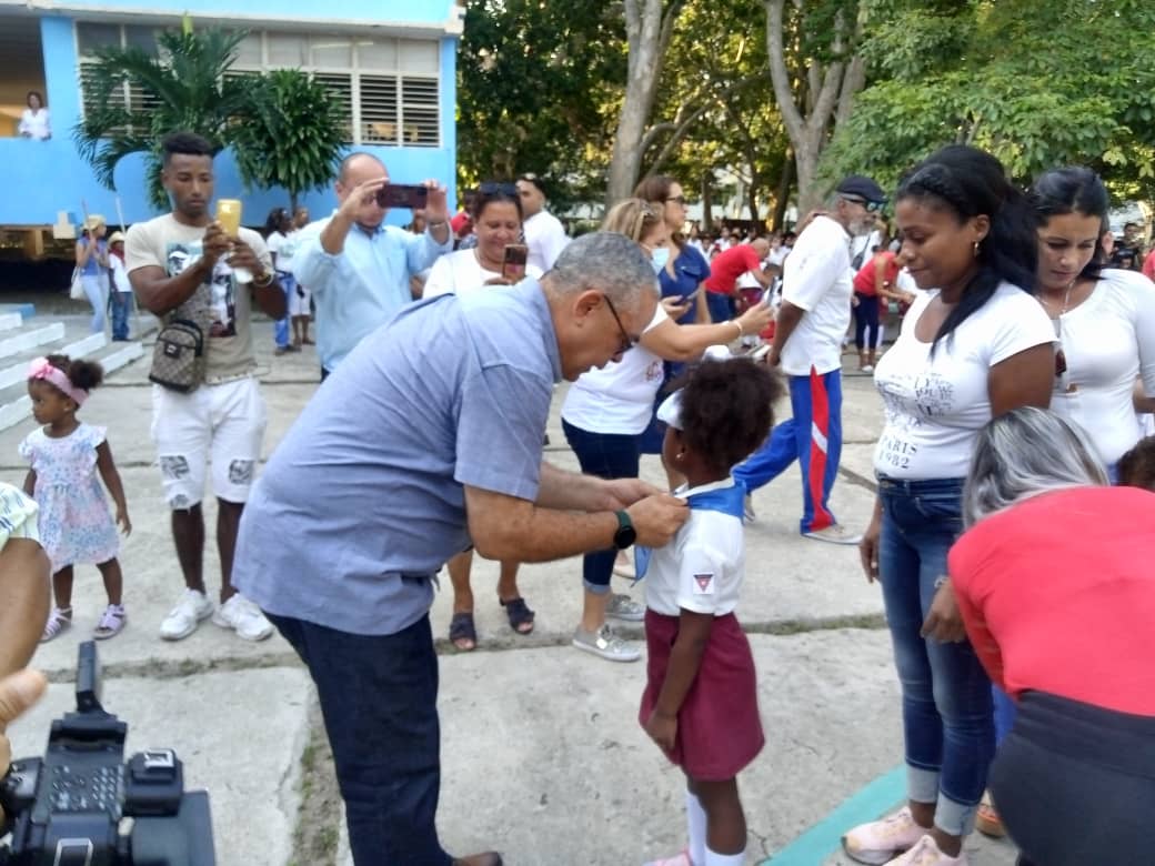 Alumnos de primer grado de la escuela primaria Guerrillero Heroico, del consejo popular Cojímar, en el municipio Habana del Este, recibieron este lunes su pañoleta azul, atributo que acredita a los pequeños como pioneros moncadistas, uno de los pasos trascendentales en la etapa estudiantil.