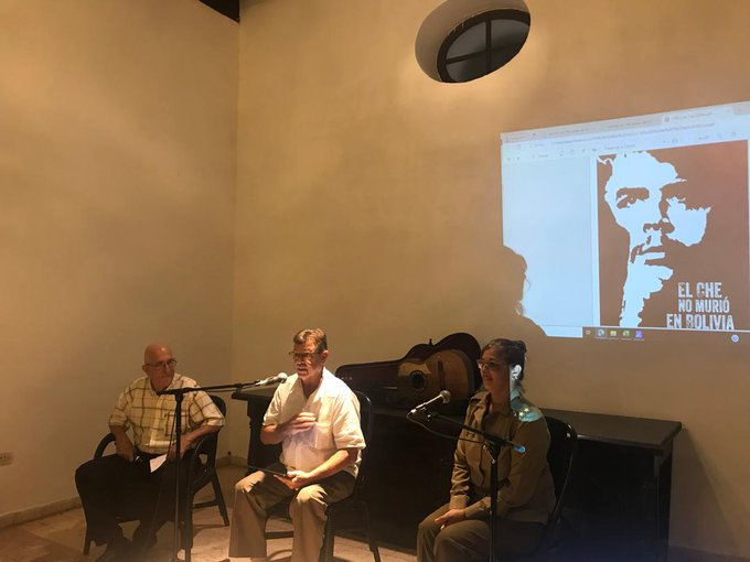 La plática fue breve, porque reclamaban su presencia en el teatro de la Comandancia de Ernesto "Che" Guevara en La Cabaña, para presentar su último libro El Che no murió en Bolivia, de la Editorial Verde Olivo.