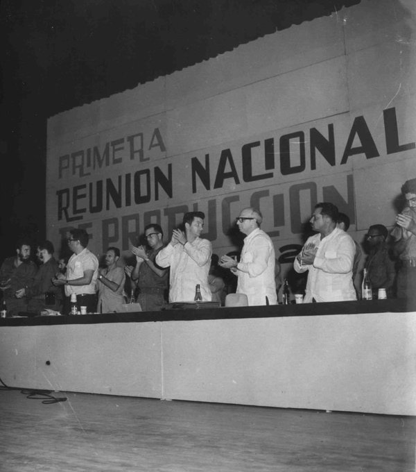 Luego, en 1961, Fidel Castro Ruz preside la Primera Reunión Nacional de Producción, celebrada en el teatro Charles Chaplin, de la capital.