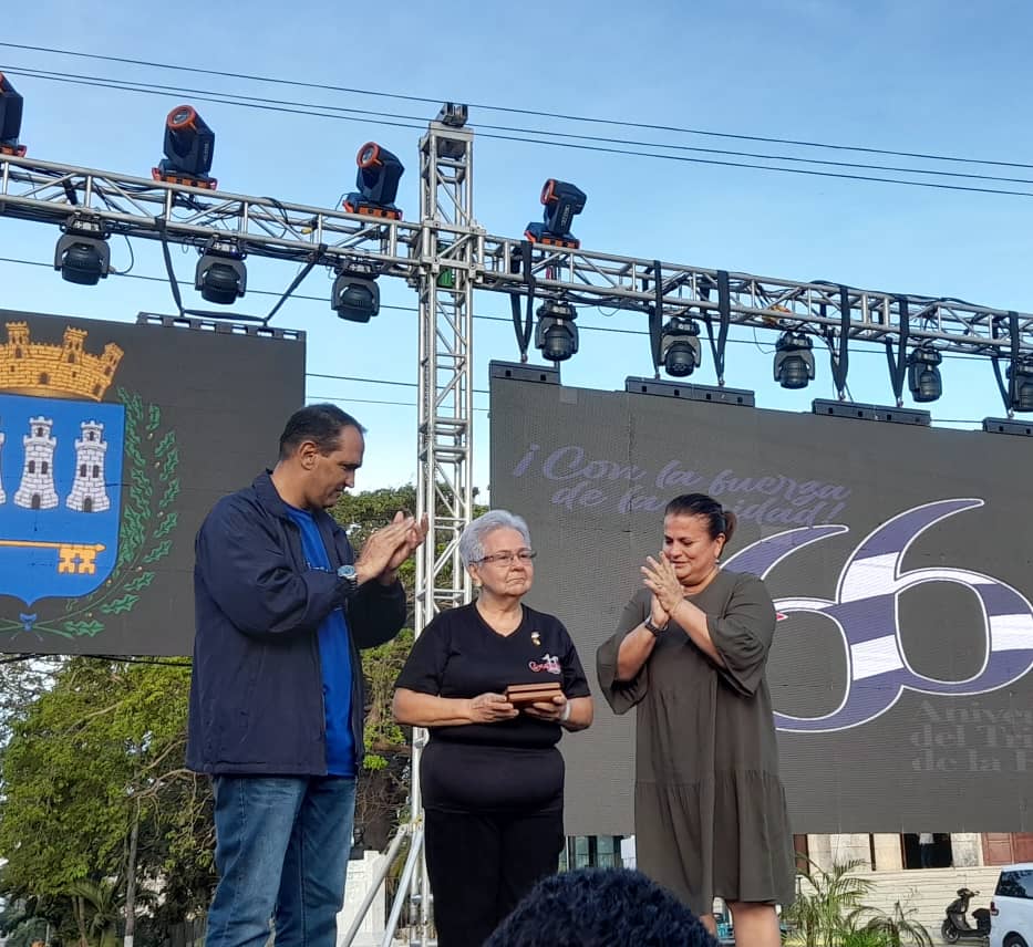 En un momento muy emotivo de la actividad recibió el reconocimiento de Hija Adoptiva de La Habana la compañera Gladys María Bejerano Portela, Heroína del Trabajo, quien hasta 2024 se desempeñó como contralora general de la República de Cuba.