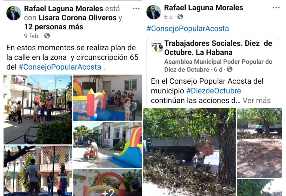 Muestra de los ejemplos positivos que se visualizan a diario. Capturas de pantalla al perfil en Facebook de Rafael Laguna Morales, delegado del consejo popular Acosta, en Diez de Octubre. |