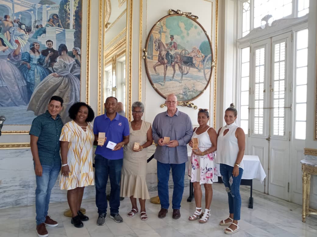 | Los premiados al centro, junto a directivos de la ANIR y la Central de Trabajadores de Cuba (CTC) en La Habana. Foto: de la autora. |