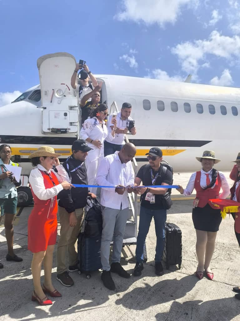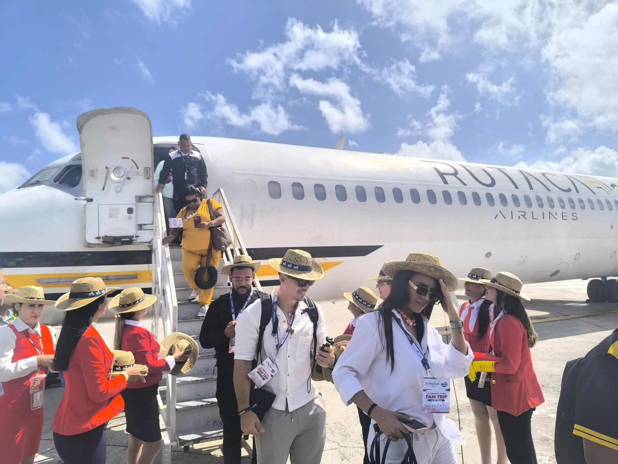 Havanatur informa que este primer vuelo de Rutaca Airlines fue recibido en la terminal aérea por Yoelkis Salazar Rivery, director general del touroperador, junto a ejecutivos de la institución.