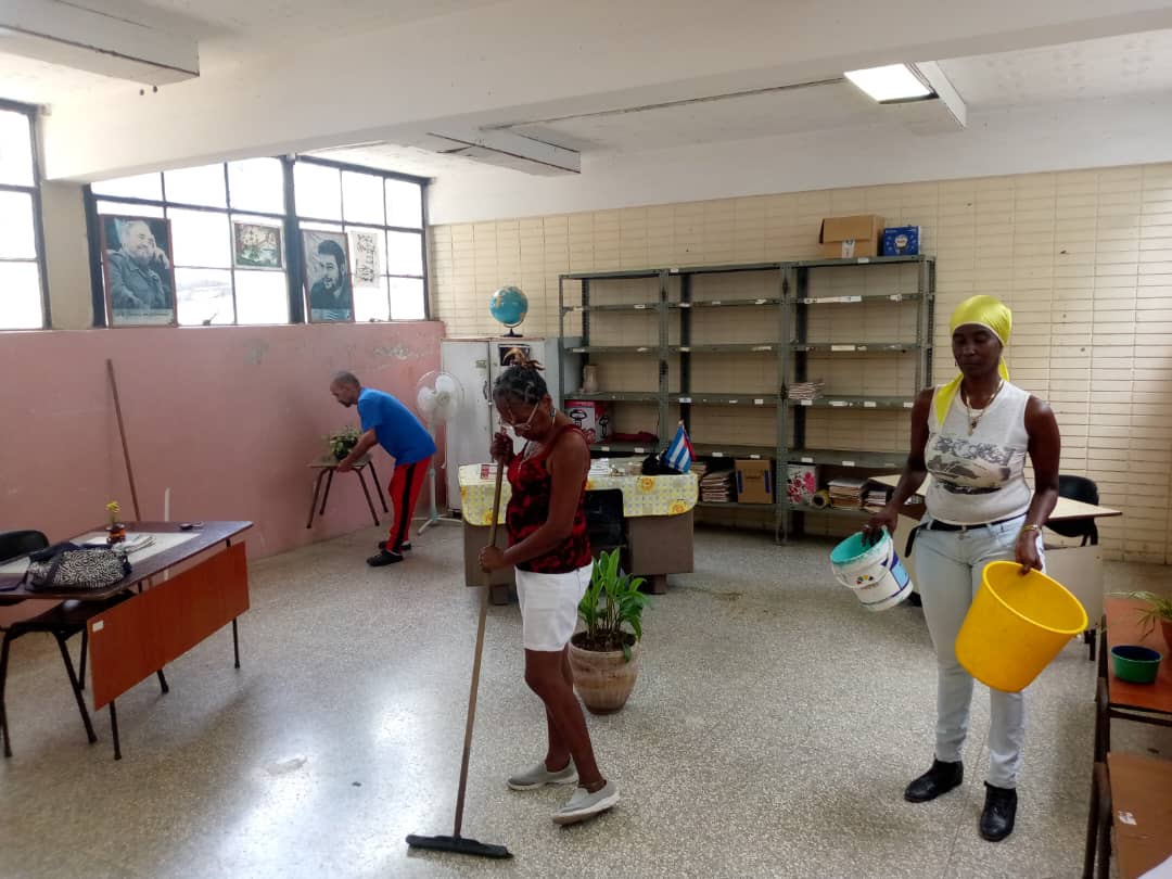 Muestra de las labores de limpieza y embellecimiento llevadas a cabo en las instituciones docentes de Diez de Octubre. Fotos: cortesÃa de Leyanis Darroman Olivares. |