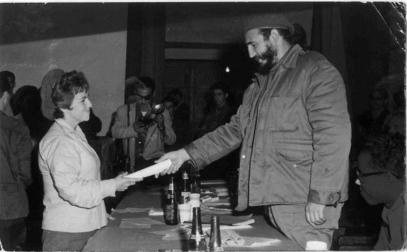 | El Comandante en Jefe Fidel Castro Ruz durante la graduación de mil 100 maestros voluntarios. Foto tomada del sitio web Fidel Soldado de las Ideas. |