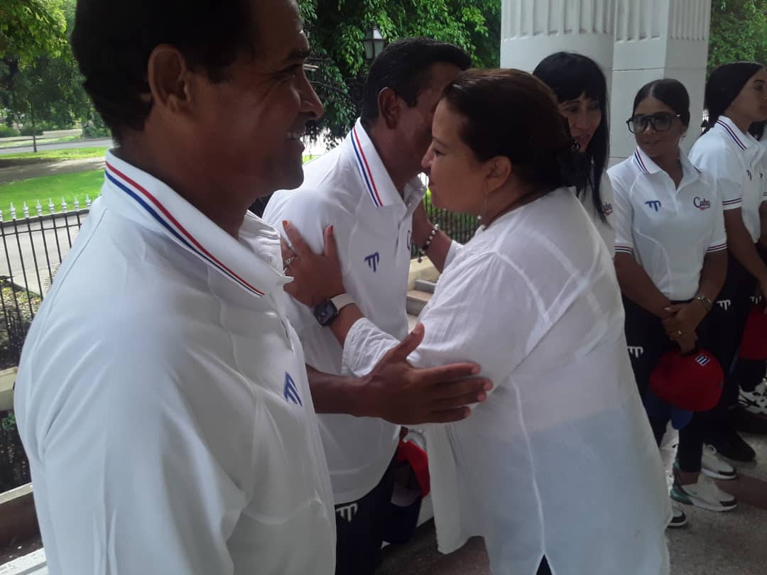 La ceremonia contó con la presencia de la secretaria general de la FMC, Teresa Amarelle Boué, quien tuvo a su cargo la entrega de la enseña nacional a la capitana del equipo, Libia Duarte.