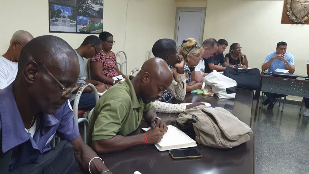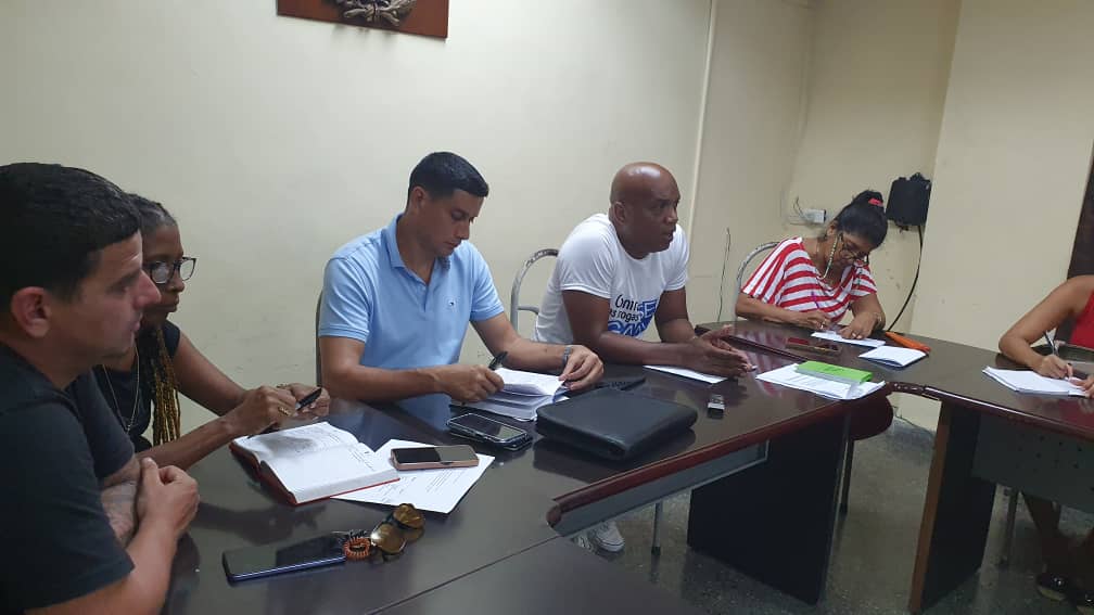 | Momento de uno de los encuentros de trabajo encabezado por el intendente de San Miguel del Padrón, doctor Alberto Zamora Torres. Fotos: de la autora. |