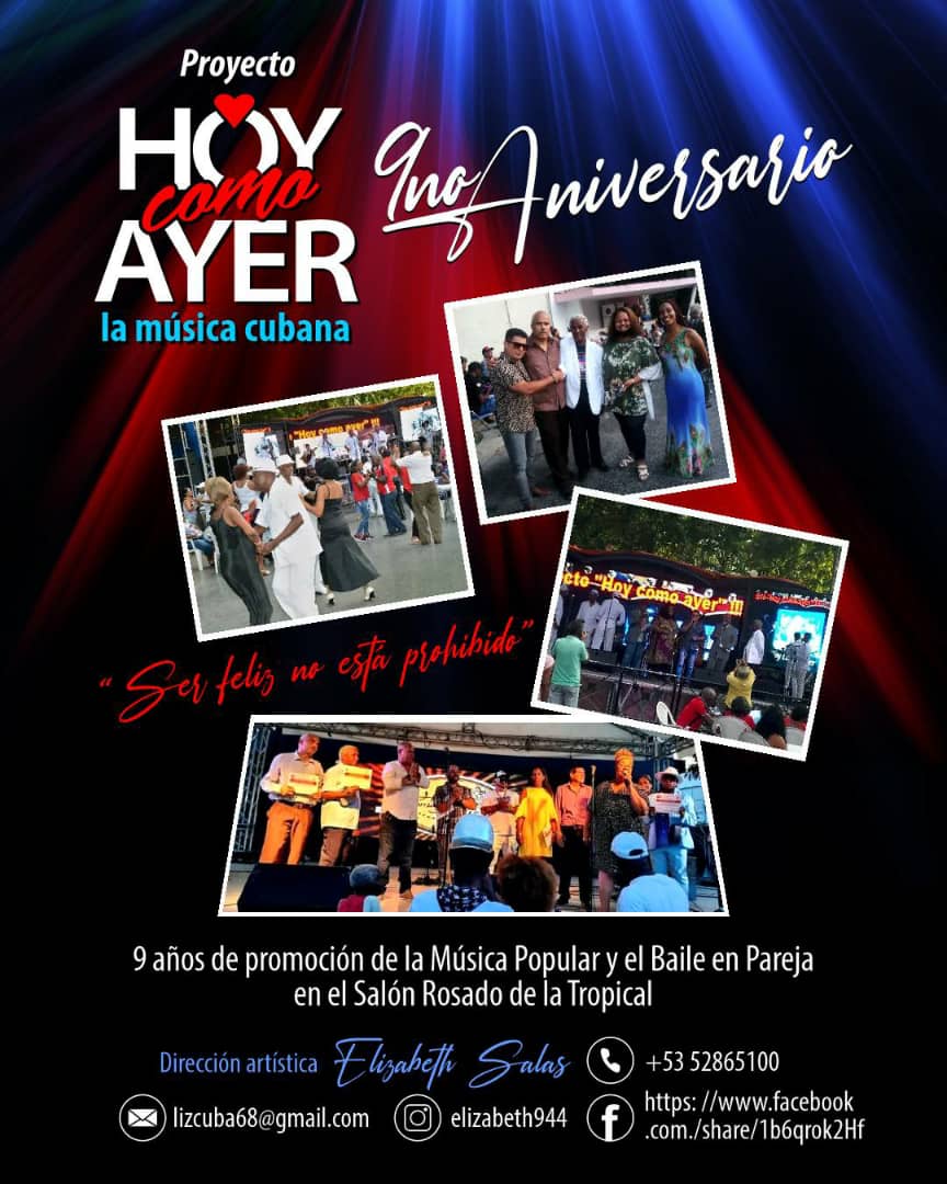 Este jueves, 18 de septiembre, el emblemático Salón Rosado de la Tropical Benny Moré será escenario de una gran fiesta sonera para celebrar el noveno aniversario del proyecto artístico Hoy como Ayer, la Música Cubana, una iniciativa de la empresa Artex que ha marcado pauta en la promoción de la tradición sonera y popular bailable en parejas.