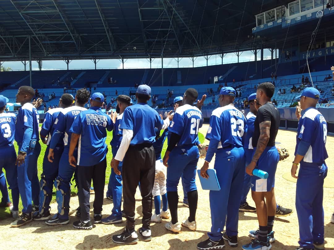 | Equipo Industriales al finalizar el quinto juego ante Cienfuegos. Foto del autor |