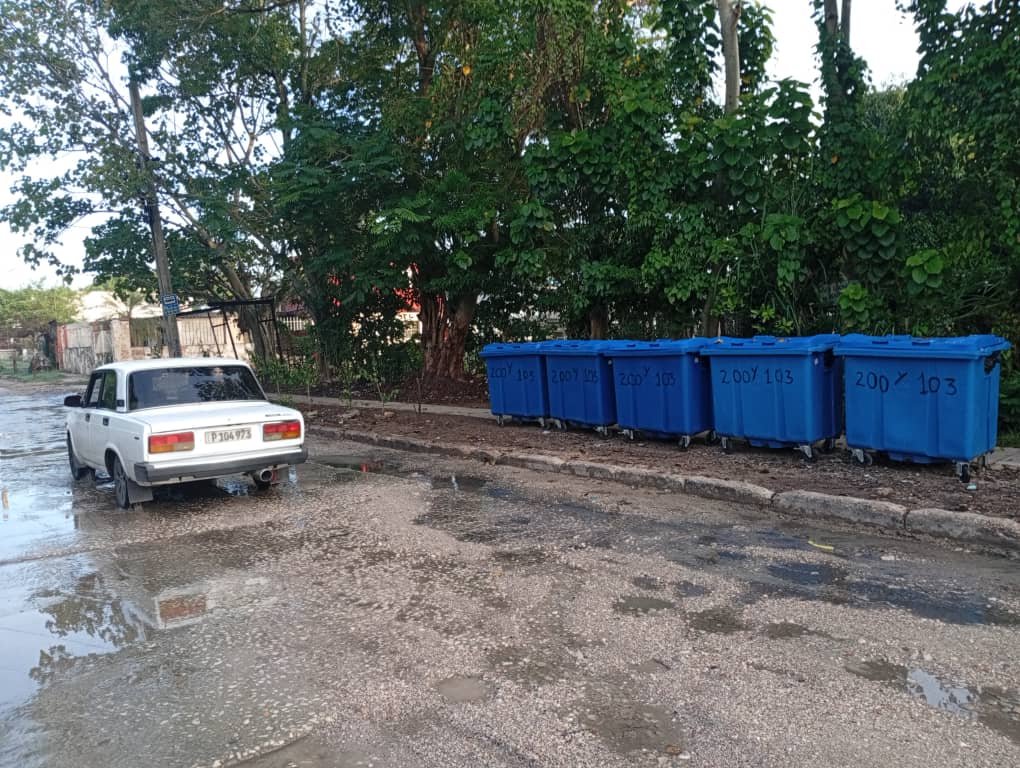El amanecer fue hoy tan diferente que no tuve que abandonar la acera, desechando aquella montaña de desechos domésticos, escombros y restos de chapeas; me encontré con cinco relucientes contenedores totalmente nuevos, muy bien ordenados y las jardineras con plantas recién sembradas.