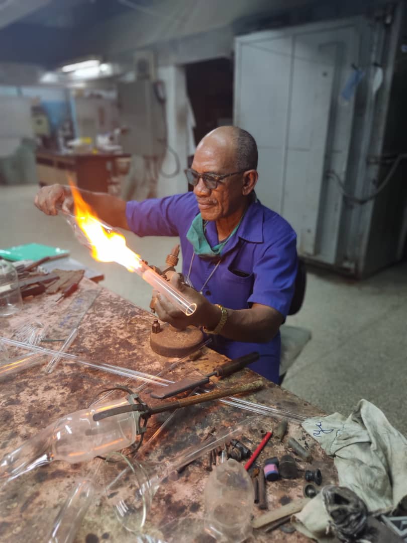Amado Silo Sáenz Álvarez, especialista en vidrio, diseñó una alternativa local para las pipetas Pasteur, utilizadas en la extracción de sangre a roedores mediante punción del seno retro orbital.