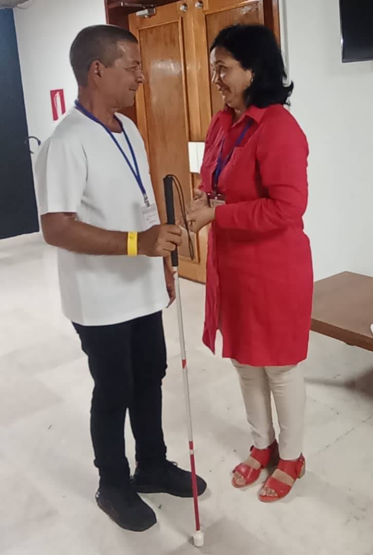 La metodóloga Marta Pérez valora altamente el rol de Eddy Vives, único maestro de apoyo ciego especializados en discapacidad visual. Foto: Lissette Martín López. |
