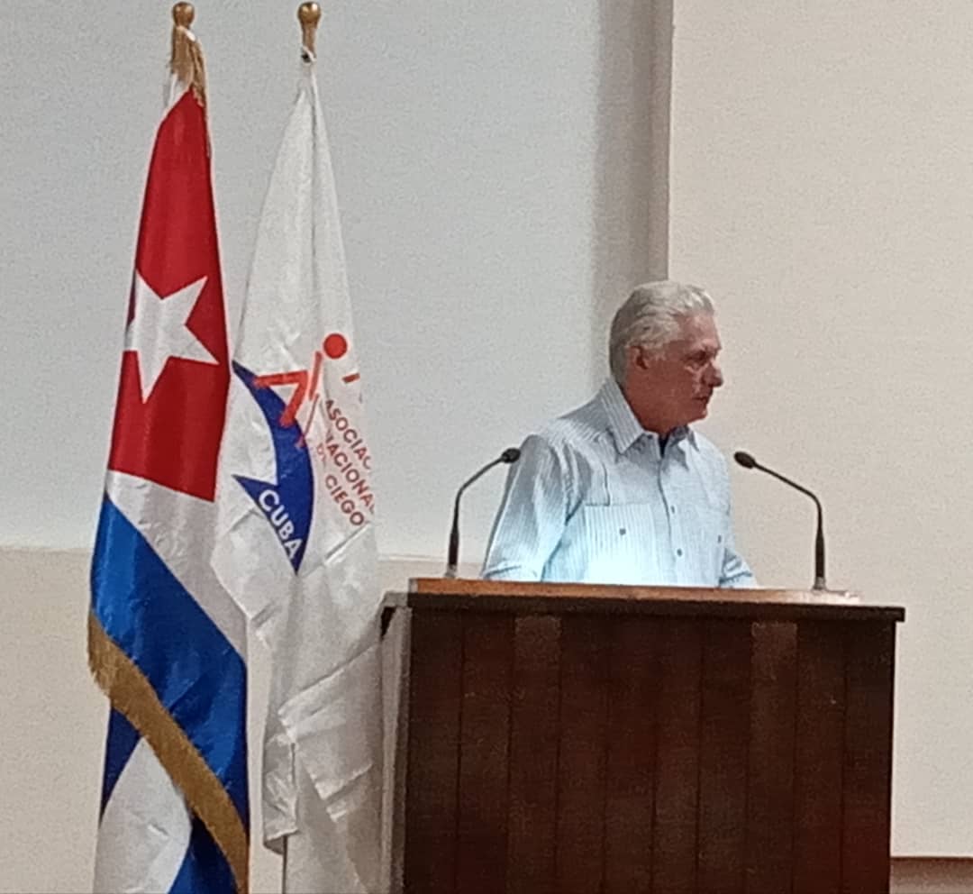 El presidente cubano Miguel Díaz Canel Bermúdez acompañó la clausura del IX Congreso y Asamblea General de la Asociación Nacional del Ciego