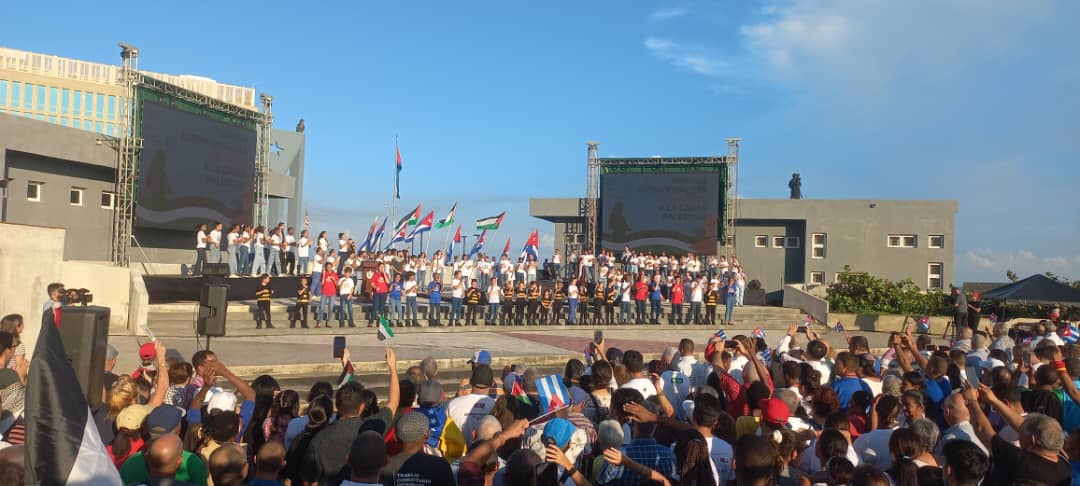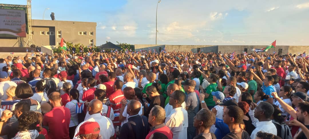 Más de 100 mil habaneros en representación de los cubanos se concentraron en la Tribuna Antiimperialista en el municipio de Plaza de la Revolución en apoyo al pueblo de Palestina.