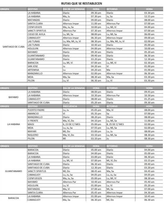 La Empresa de Ómnibus Nacionales reanuda sus operaciones de forma normal a partir de este sábado 8 de noviembre, a las 23:50 (hora local), para las rutas suspendidas como consecuencia del paso del huracán Melissa.