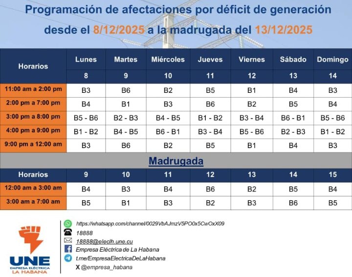 Fuentes consultadas: canal de Telegram de la Empresa Eléctrica de La Habana y sitio web de la Unión Eléctrica de Cuba